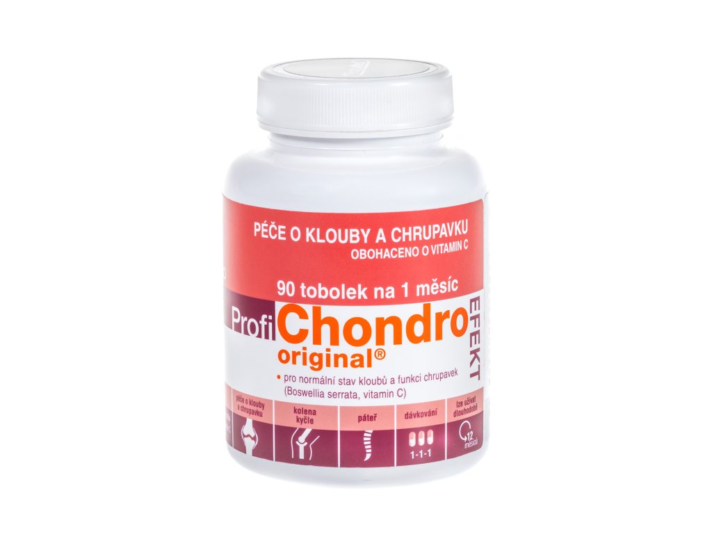 Přípravek ProfiChondro Original EFEKT byl vyvinut ve spolupráci s odborníky ČR. Ve svém složení obsahuje kombinaci látek pečujících o pružnost a správnou funkci kloubů a chrupavek (extrakt Boswellia serrata a vitamin C).